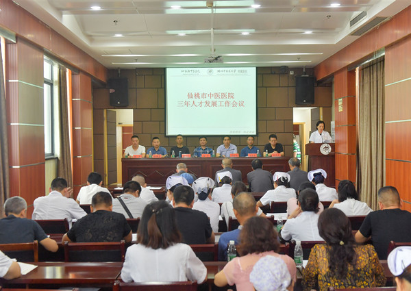 2019年7月4日下午,仙桃市中医医院三年人才发展工作会暨名老中医传承计划拜师典礼活动在医院住院部顶层会议室隆重召开。院党委书记、院长魏华出席活动并发表重要讲话。院党委副书记、副院长昌志红任活动主持。院党委班子及中层管理人员、临床医疗人员约100余人参会。