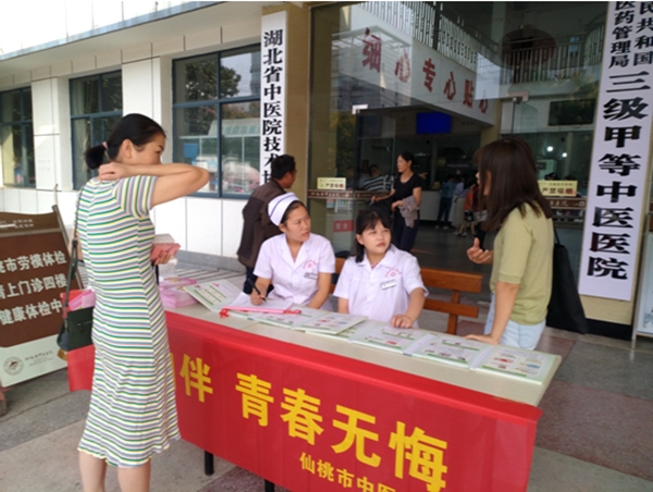 为提高育龄人群安全避孕意识,唤起全社会对生殖健康的关注,减少非意愿妊娠和不孕不育的发生,9月26日,我院在门诊部楼前开展了以“健康相伴 青春无悔”为主题的世界避孕日宣传活动。