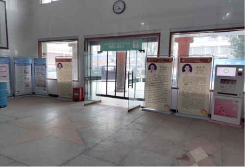 长埫口镇中心卫生院门诊大厅专家宣传站牌摆放醒目