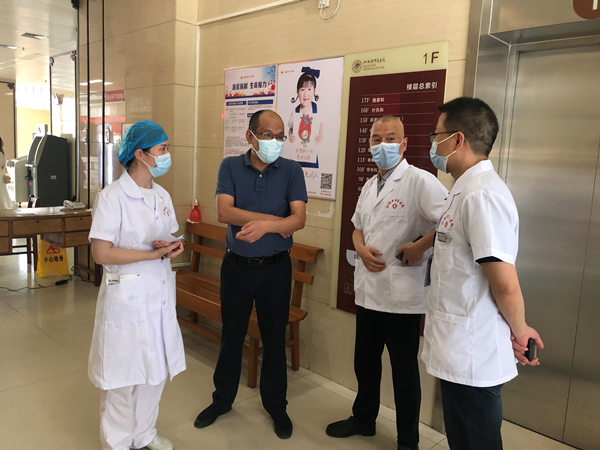 8月7日下午,市卫健委党组书记、主任马培祥来我院督查暗访疫情防控工作。马书记不打招呼,分别赴行政办公区、住院部卡口、住院病区及门诊预检分诊处了解行后员工是否在防控一线卡口、是否规范管理、住院病区封闭管理是否到位。