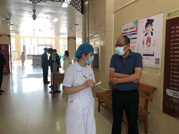 在住院大厅,马书记详细询问了医院院感管理情况,他强调,院感无小事,要深刻汲取郑州医院院感事件教训,一是要加强预检分诊卡口把守,严格查验“健康码”和“行程码”、测体温、查戴口罩及落实“一米线”等防控要求;二是规范诊室行为,“一人一患一诊室”,严格落实首诊医生负责制,接诊患者必须详细询问流行病学史;三是要切实加强住院部封闭管理,患者及陪护核酸检测到位、缓冲隔离到位。同时,要为患者做好后勤保障工作,力所能及提供差异性饮食服务;四是要加强医务人员及保洁人员院感知识的培训,切实增强医务人员感控意识,丰富感控知识,提升感控技能,加强自身防护;五是做好对发热病人的筛查及闭环转运管理;六是近日对已入院的来自中高风险省份城市低风险区域的住院患者及陪护人员复查核酸,做到心中有数。