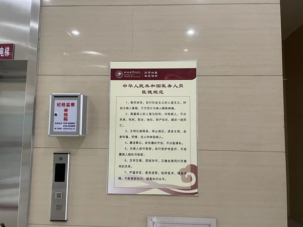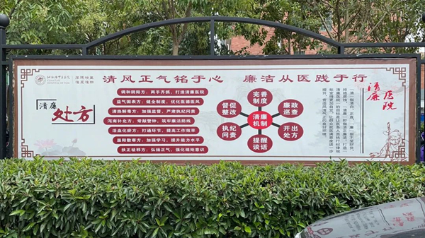 走进市中医医院,电子屏上的清心廉语、科室走廊上的投诉举报箱、医务人员桌前的廉洁从医承诺书……无处不在的清廉元素,记录着市中医医院建设“清廉医院”的决心和脚步。