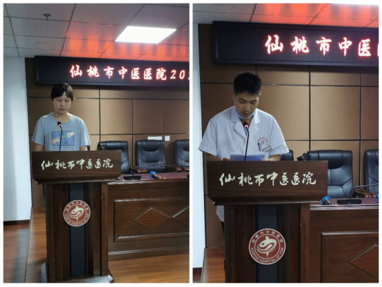 纪检监察审计科科长周祥带领新职工进行入职宣誓