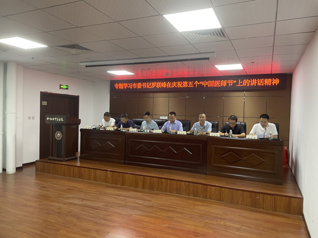 党委委员、副院长刘志杰领学《关于在全市卫生健康系统开展学习市委书记罗联峰在全市“中国医师节”讲话精神通知”》。