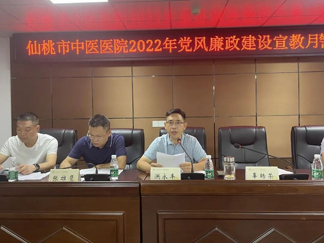 党委委员、纪委书记洪永丰宣读《2022年仙桃市中医医院党风廉政建设宣传教育月活动方案》。