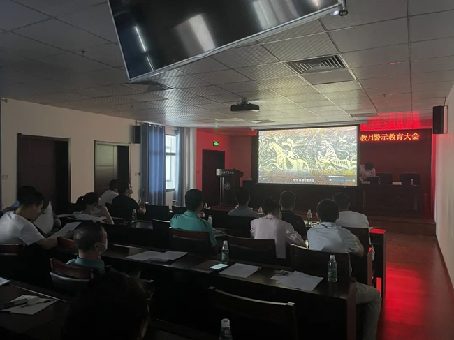 参会人员集体观看《围猎陷阱》警示教育片