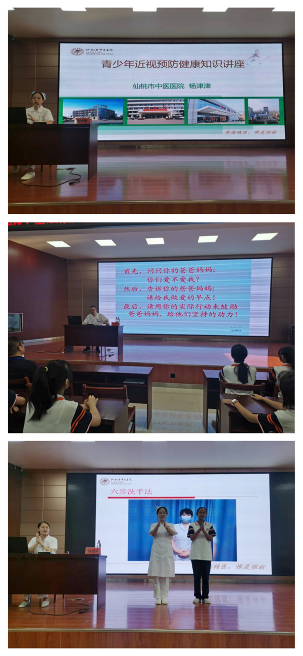 接着,院急诊科主任刘文涛、护理部主任杨津津、感染管理科科长昌艳英分别运用通俗易懂的语言,通过理论与实践案例相结合、提问与交流相互动等方式,围绕食品卫生安全、青少年近视预防、新冠肺炎预防途径以及如何正确佩戴口罩、规范“七步洗手法”等进行手把手教学,将健康宣教内容融入生活案例之中,学生们仔细聆听,积极参与,学习氛围活泼有趣。